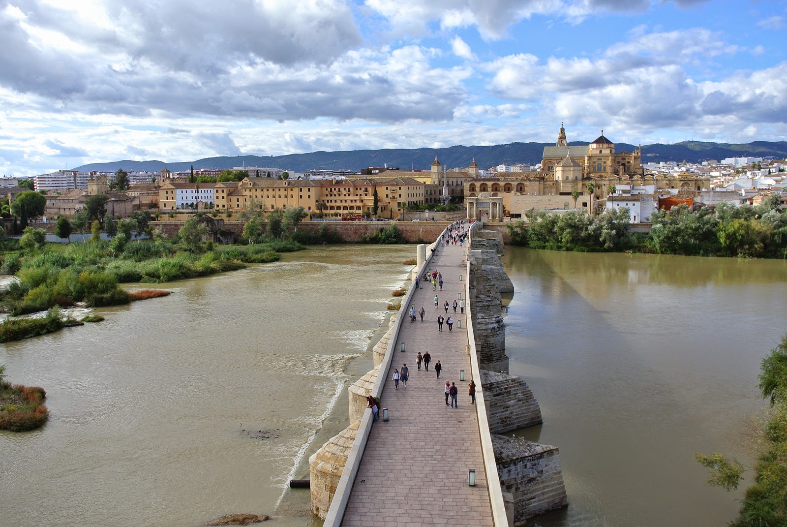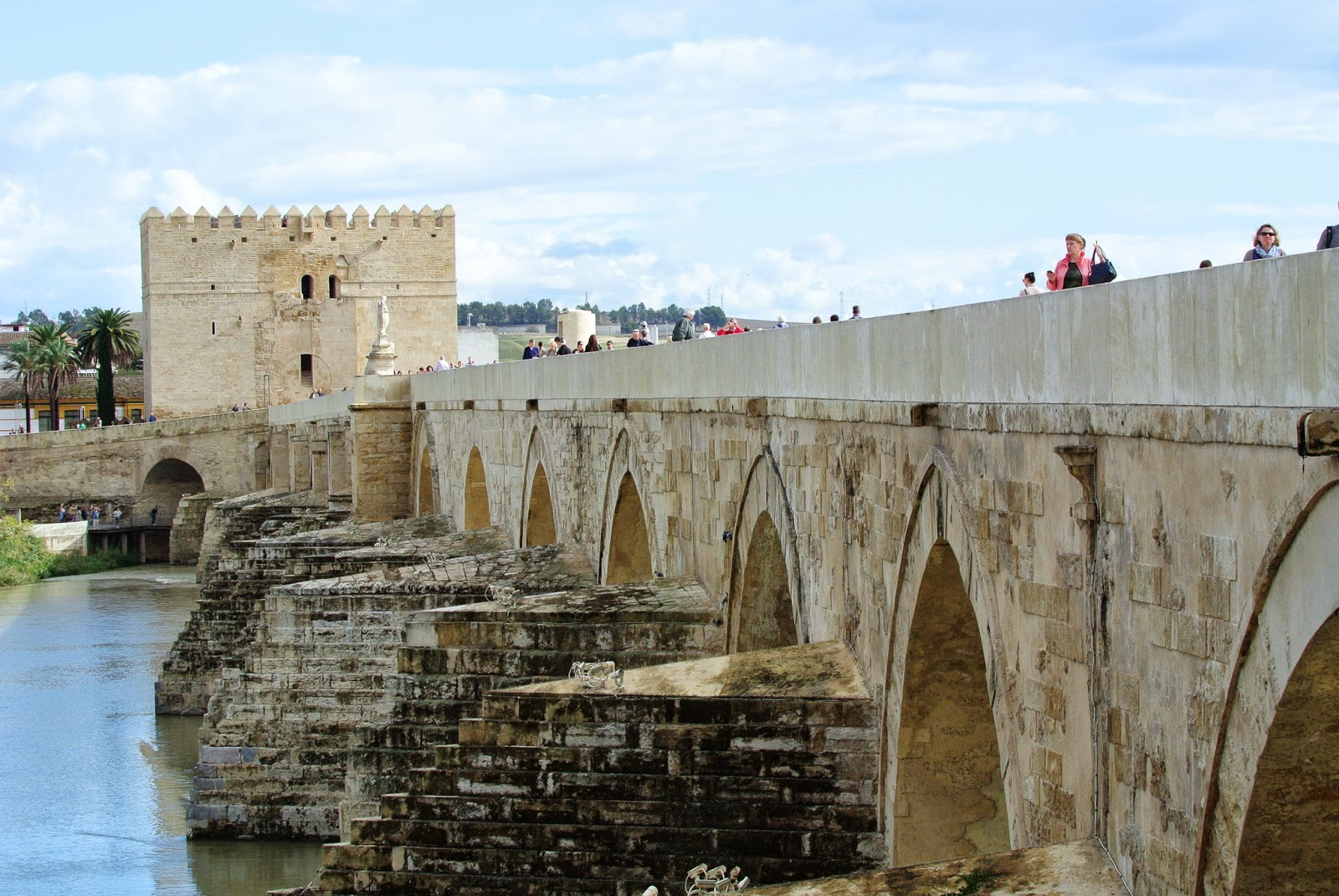 După mâncare, mai departe pe străzi, la farmacie, unde din păcate nu au pansamentul antibiotic care-mi trebuie pentru picior, așa că mergem mai departe, spre râul Guadalquivir, să vedem podul roman. Dotat la capăt cu turn, Torre Calahorra. Hai sus, evident, zice King Kong.
