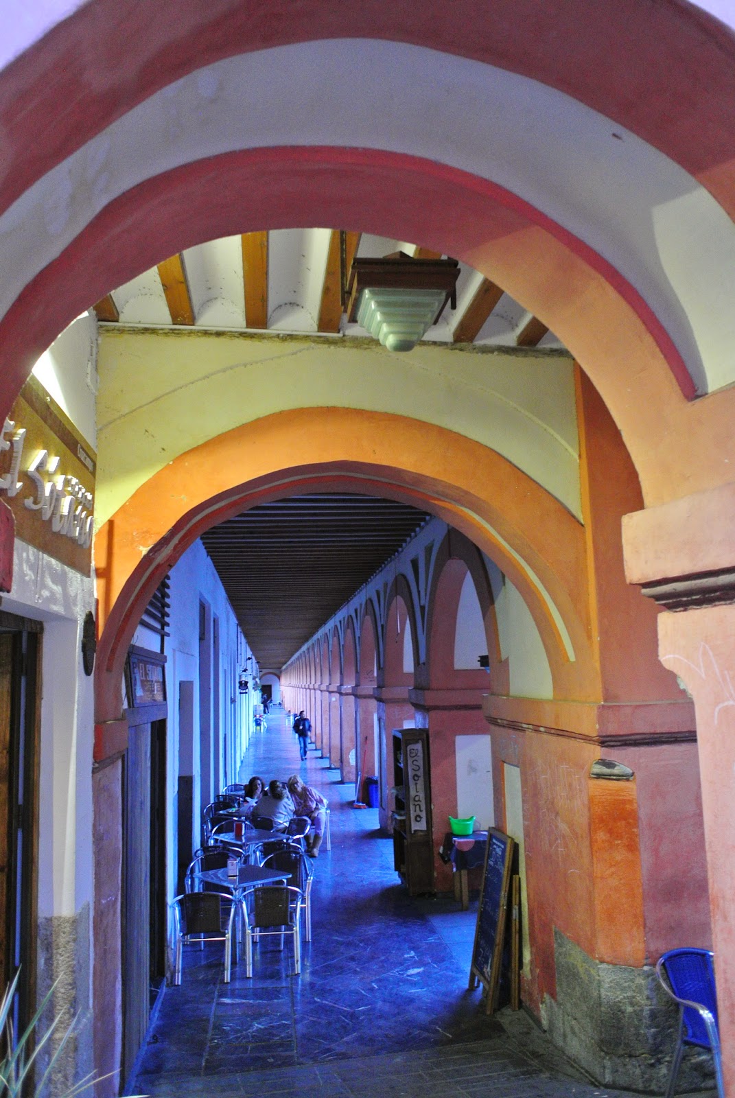 Ne e foame, și plouă. Vrem să căutăm restaurantul menționat de recepționera de la hostel cât mai repede, să stăm acolo până trece ploaia, dar plouă așa de tare că trebuie să ne adăpostim. Din fericire nu durează mult și putem pleca în curând spre restaurant. Tapas la ordinea zilei, simple și bune. Într-o curte „standard” – Cordoba se pare că e celebră pentru patios.