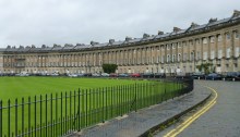 Îmi plac clădirile din piatră de nisip (sandstone), tot orașul vechi e făcut din ea. Poartă amprenta arhitecților John Wood (Cel Bătrân și Cel Tânăr) care au marcat stilul Georgian neoclasic al secolului 18. Drumul duce inevitabil către Royal Crescent, care apare în toate pozele. Ce din poze credeam că e un palat se dovedește…
