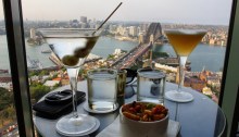 Trecerea peste podul din port, The Rocks, feribotul 3, Manly & Shelly Beach, ora de cocktail, cina cu friptură de pe terasă, ora albastră.