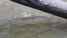 Când am văzut crocodilul mi s-a pus un nod în gât, am întins mâna spre stânga, dar cuvintele nu au venit imediat: „is that… a croc?” Daaa. A fost o femelă crocodil, între 3-4 metri. Splen-di-dă. Imaginea ei unduitoare mă va urmări toată ziua. Uff, noroc am avut! Putem debarca liniștiți pe mal, având grijă…