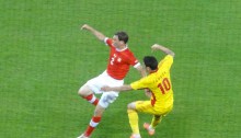 Simt o bătaie pe umăr. ”Tricoul e al echipei României?” mă întreabă tânărul de pe rândul din spate. ”Da”. ”Marsel Raducianu”, zice zâmbind. ”Poftim?” ”Marsel Radukanu”. ”Aaa, Marcel Răducanu! Ja, ja :)” În gând mă mir cu un amestec de bucurie și tristețe că tânărul care nu cred că era născut când juca Marcel Răducanu…